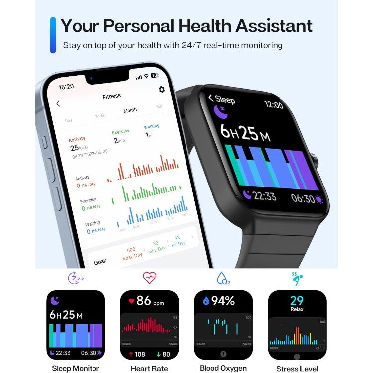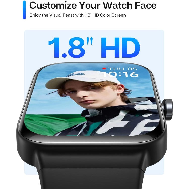 Pametna ura je opremljena z velikim 1,8-palčnim barvnim HD zaslonom z visoko ločljivostjo in občutljivim upravljanjem na dotik. Izbirate lahko med več kot 100 unikatnimi številčnicami ali pa naložite svojo najljubšo fotografijo za bolj osebni videz.