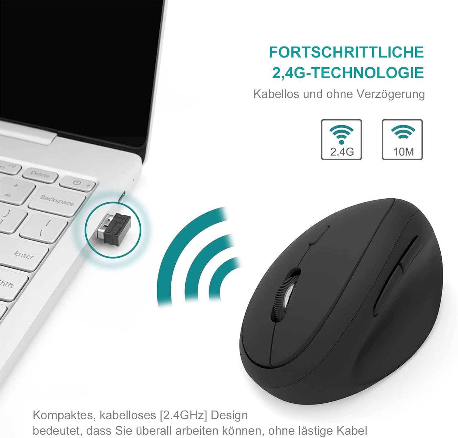 Ta navpična brezžična miška uporablja najnovejšo 2,4 GHz povezovalno tehnologijo. Preprosto priključite priložen USB sprejemnik in miška je pripravljena za uporabo – brez kablov in z dosegom do 10 metrov.